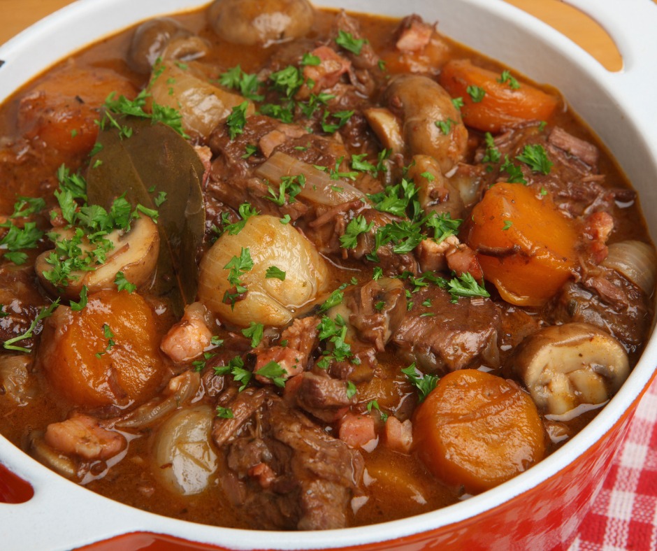 2. Beef, Mushroom & Red Wine Casserole with Root Veg Mash